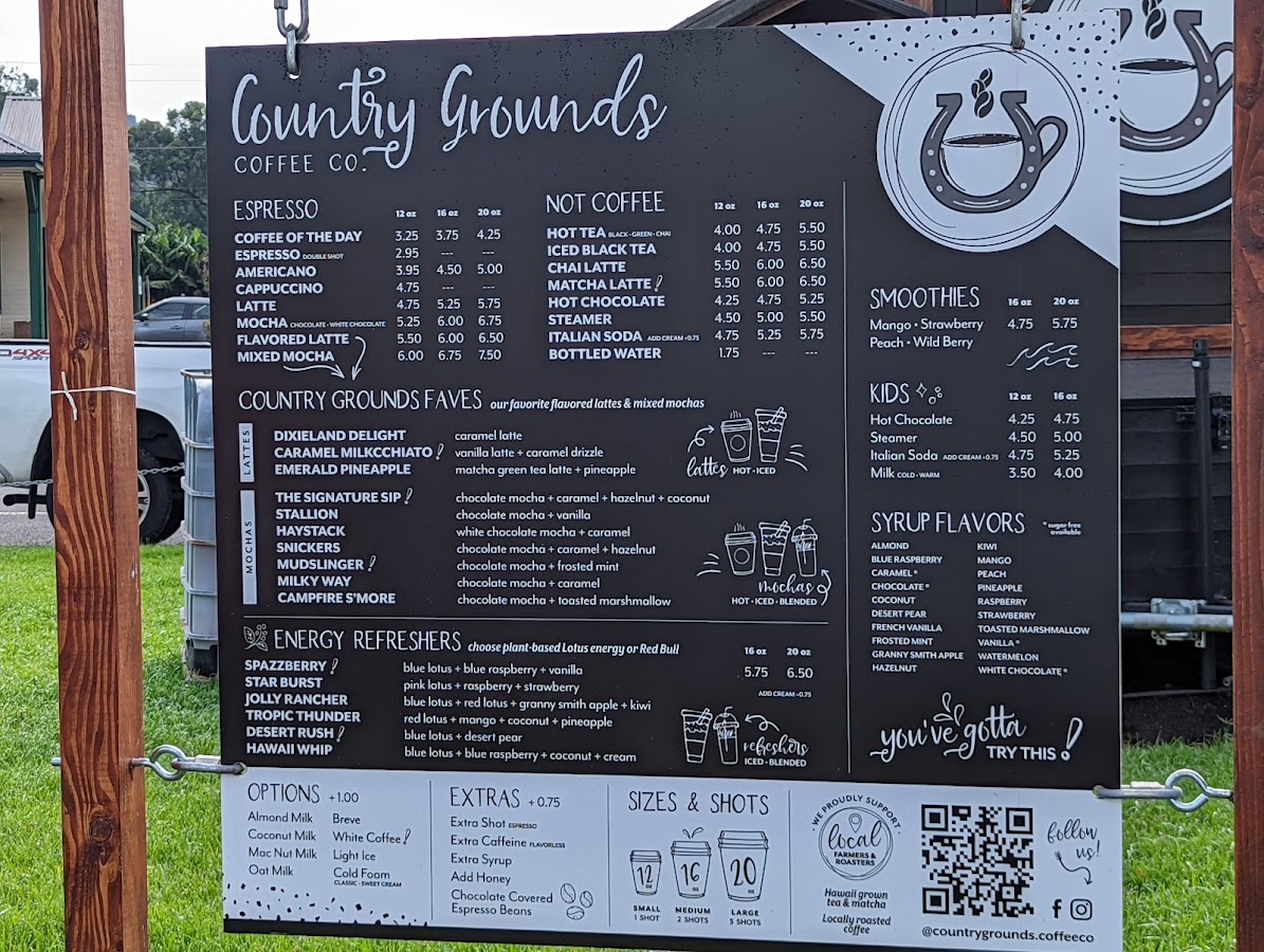 In the heart of Waimea, where island life meets Hawaii's rich paniolo heritage, Country Grounds Coffee Company serves up a genuinely local experience from its efficient drive-thru. Established around 2022 by Ashley and Robert, this family-owned venture was born from a desire to offer a convenient, yet distinctly Waimea, coffee stop rooted in 'home-roasted values.' They are passionate about their community, aiming to provide simple excellence in every cup and natural, high-quality products that reflect the authentic taste of rural Hawaii, making them a cherished part of many daily routines. The essence of Country Grounds lies in its unwavering commitment to local and natural ingredients. Their signature coffee, often organically-sourced, is always locally-roasted, presenting a unique Waimea blend. This philosophy extends to Hawaii-grown tea, matcha, and delicious baked goods sourced from local Waimea artisans. You'll find no artificial additives here, only thoughtfully crafted beverages, from specialty coffees to vibrant, all-natural energy drinks. This dedication to quality, community, and authentic local flavors has rightfully earned them the 'Best Cup of Coffee in West Hawaii' accolade for three consecutive years, a testament to their special place in the community.