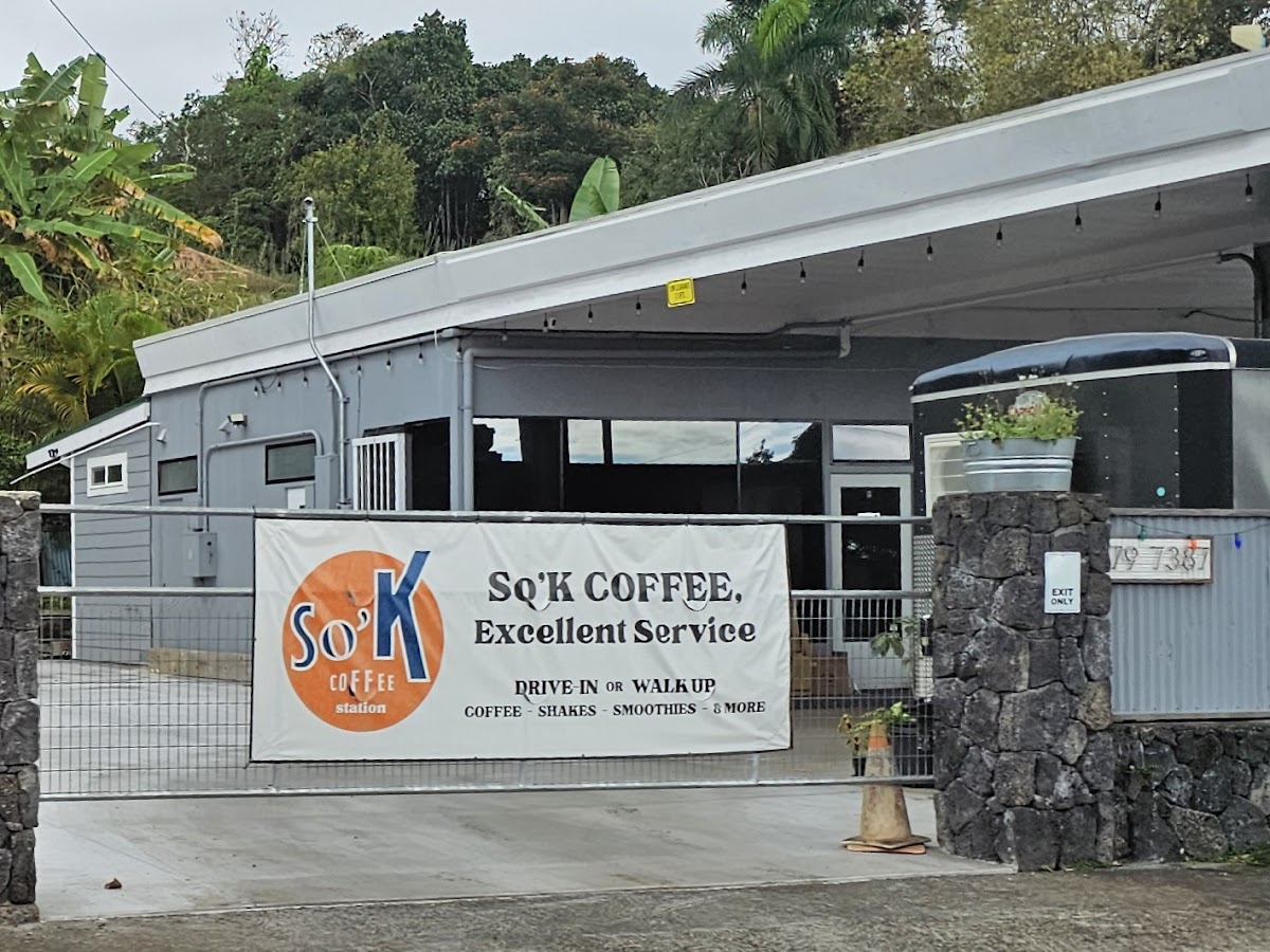 In the heart of Kainaliu Town, Kealakekua, you'll find So'K Coffee Station, an essential early morning pit stop for the community. True to its mission, it opens its drive-thru and walk-up window daily from 4 AM to 10 AM, dedicated to fueling local workers and early risers with impressive speed and efficiency. Their focus is on providing a quick, quality 'grab n' go' experience to help you start your day right, all delivered with good old-fashioned customer service. Beyond their core offerings of coffee, espresso, various shakes (including coffee and breakfast options), and smoothies, So'K Coffee Station takes pride in its selection of "Locally Made Small Bites." Patrons can often find comforting treats like housemade Aunty Nancy's Banana Bread or savory daily specials such as breakfast burritos, all available while supplies last. This thoughtful approach extends to their partnerships with local food vendors like HawaiiTartCo., SugarsHawaii, and BakedbyIsa, showcasing a genuine commitment to sourcing locally whenever possible and supporting the area's producers. What truly defines So'K Coffee Station is this blend of early-hours convenience, community support, and dedication to quality. It’s more than just a coffee run; it’s a reliable local hub that aims to bolster Kainaliu Town, ensuring everyone can access a warm, energizing start to their day, powered by friendly service and locally-minded offerings.